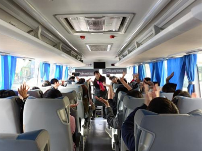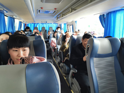 刚坐上大巴车的我们,已经按捺不住内心的激动,开起了不同风格的个人演唱会,一路上欢声笑语,歌声不断,还未到达目的地,就点燃了热情活跃的气氛。