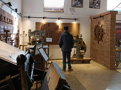 在讲解员的带领下,大家参观了位于沙朗印刷厂生活区旧址内的活字印刷博物馆,馆内陈列了上世纪60年代以来报纸印刷设备,包括铸字机、平装机、木雕版、铅字等实物,一件件历史印记的老物件展现在眼前,仿佛把大家带进那段艰苦奋斗、创业不息的峥嵘岁月。