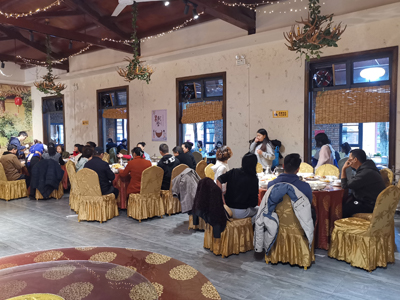 暮色降临,到了大家最喜欢的幸福食光,火锅蒸汽腾腾,羊肉在鲜白的汤里“咕噜咕噜”翻滚,看得人直流口水,配上沙朗生态新鲜的绿菜,好一顿美味佳肴,醇香爽口的美酒,吃出另一番风味。